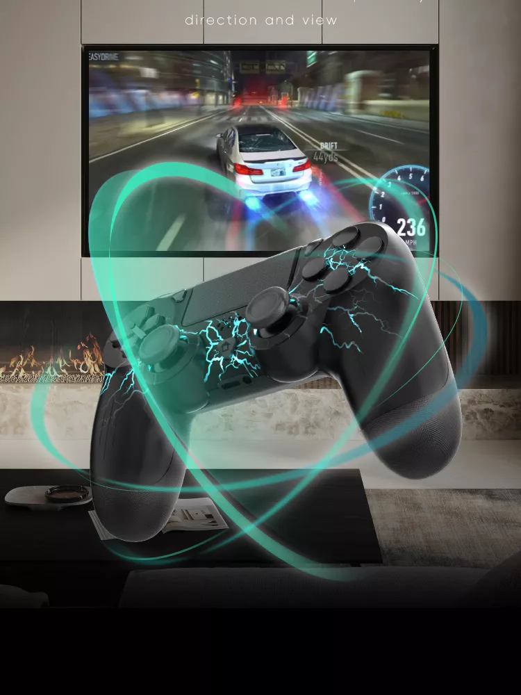 Take control of your gameplay like never before with this high-performance wireless gaming controller. Designed for PlayStation 4, PS4 Pro, PS4 Slim, PC, and Android devices, this gamepad offers a smooth, responsive, and immersive gaming experience. The built-in LED lighting system lets you customize colors for different games, creating a visually stunning effect that enhances every session. With advanced motion-sensing technology, dual vibration motors, and a sleek ergonomic design, this controller is the perfect addition to your gaming setup.